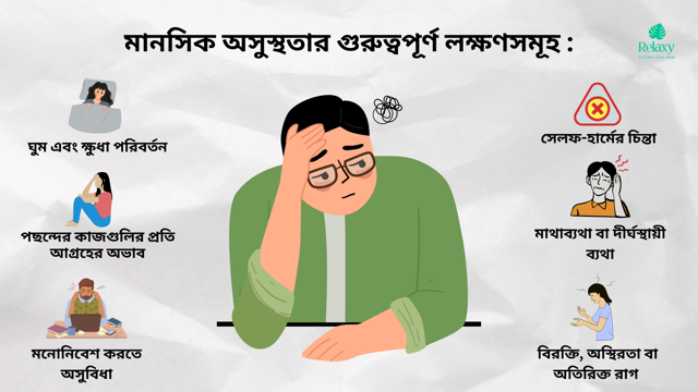 মনে রাখবেন, মানসিক অসুস্থতার লক্ষণগুলি উপেক্ষা করা আরও গুরুতর সমস্যার সৃষ্টি এবং জীবনের মান হ্রাস করতে পারে। সহায়তার জন্য বন্ধু, পরিবার বা মানসিক স্বাস্থ্য পেশাদারের সাথে যোগাযোগ করতে ভয় পাবেন না। দিনশেষে একটি সুস্থ শরীর ও সুখী মন আপনার সবচেয়ে আপন বন্ধু।